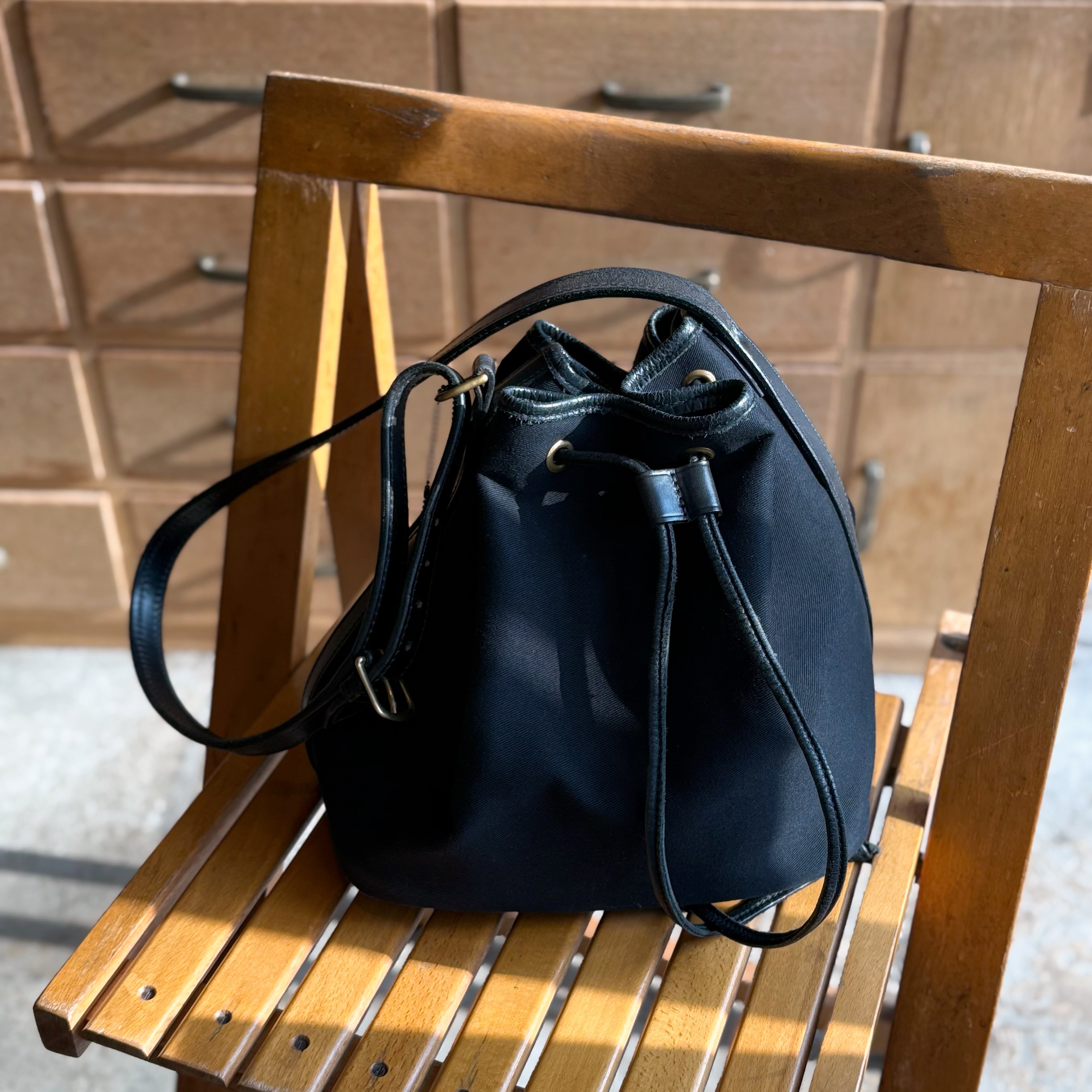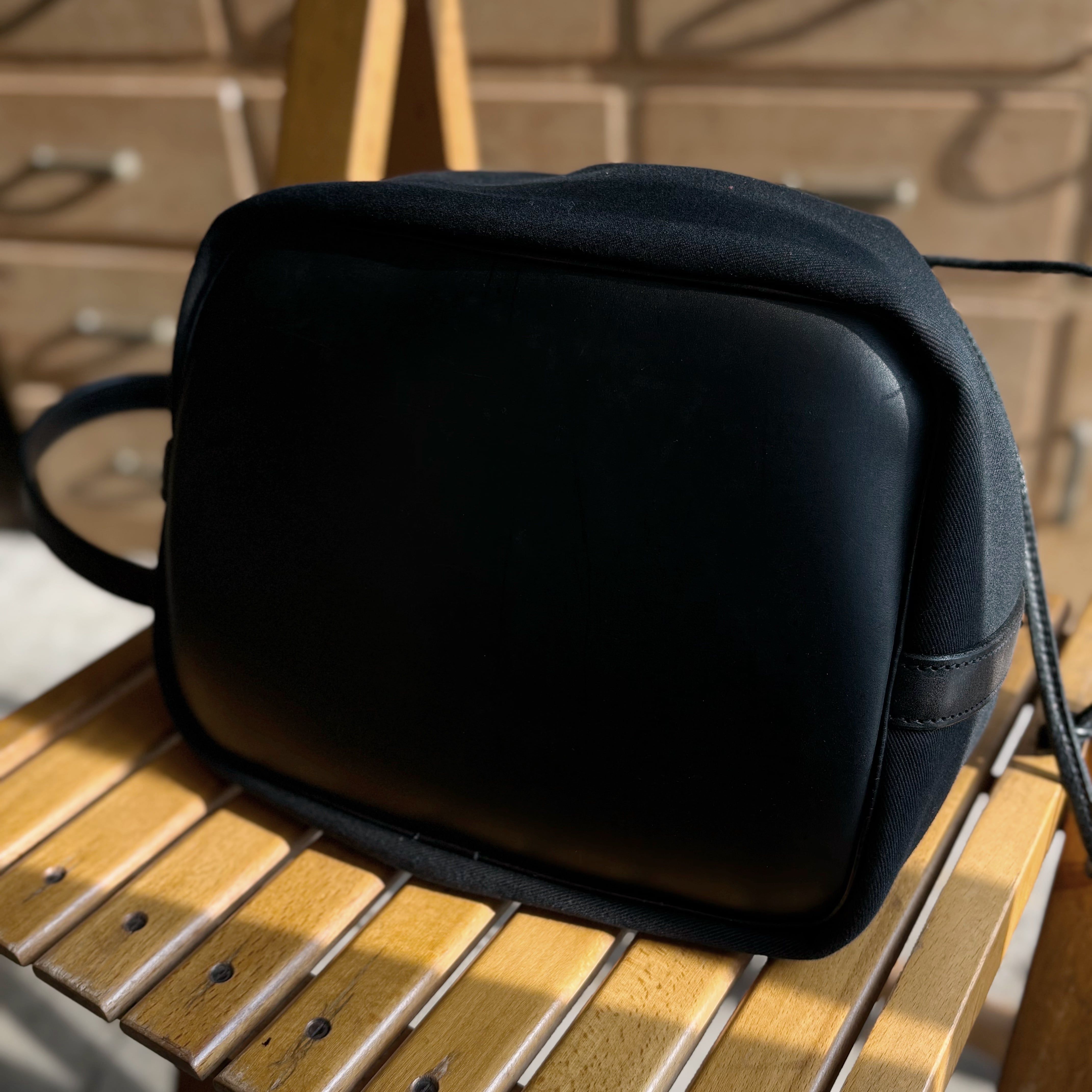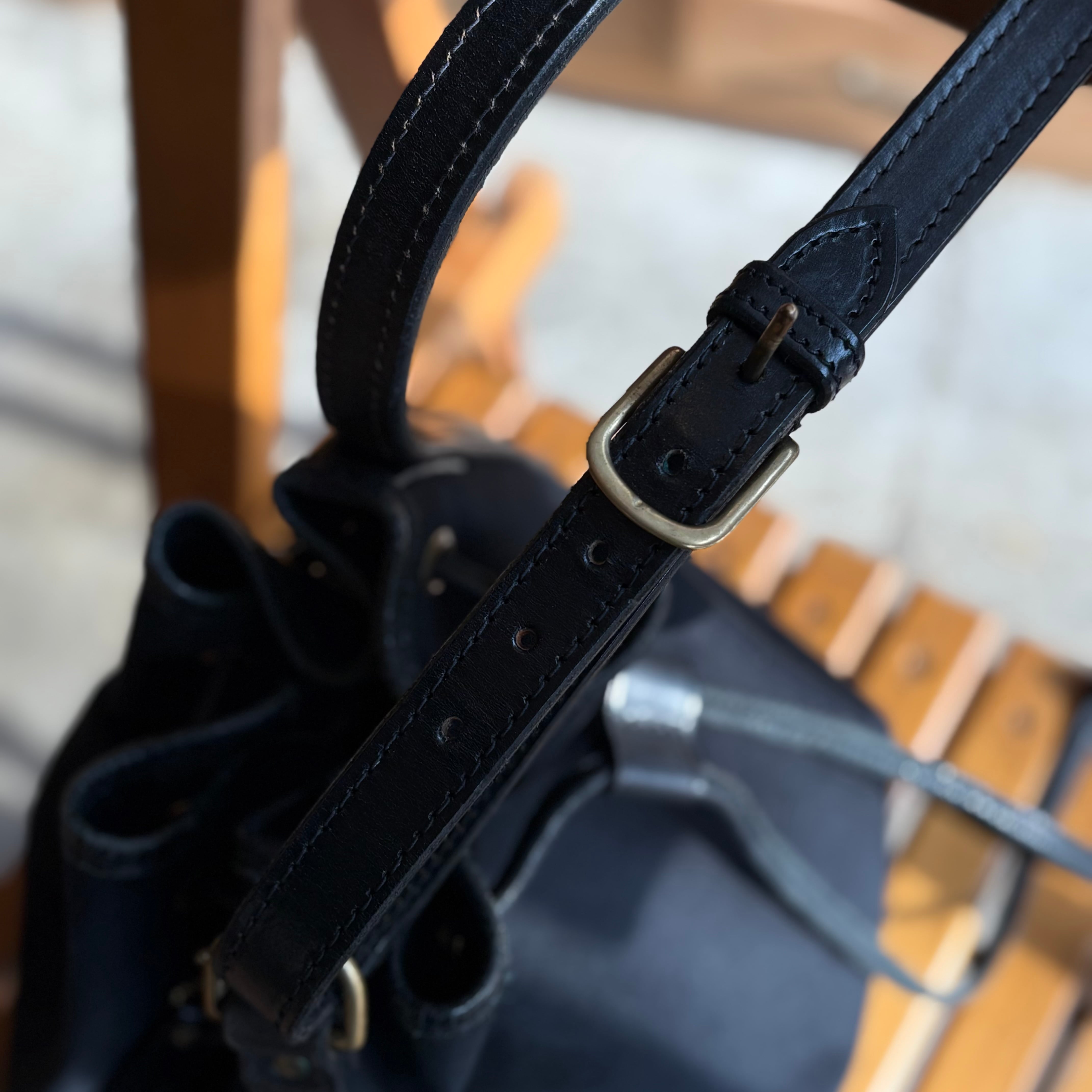 "BRADY" COTTON CANVAS × LEATHER DRAWSTRING BAG made in ENGLAND