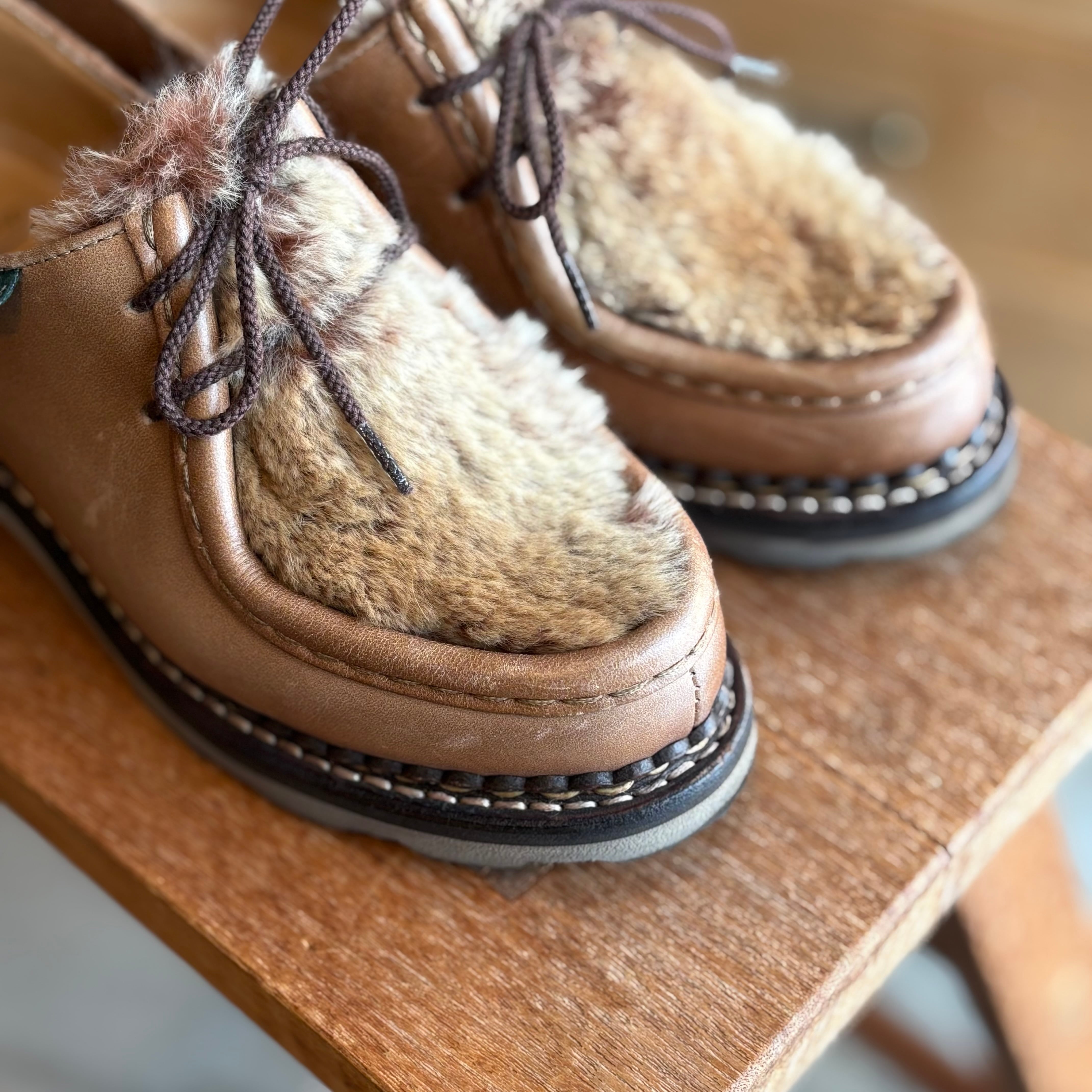 ヘビーなデザインのチロリアンシューズにふわふわのラビットファーを合わせた独特の外観は、他の追随を許さない存在感です。