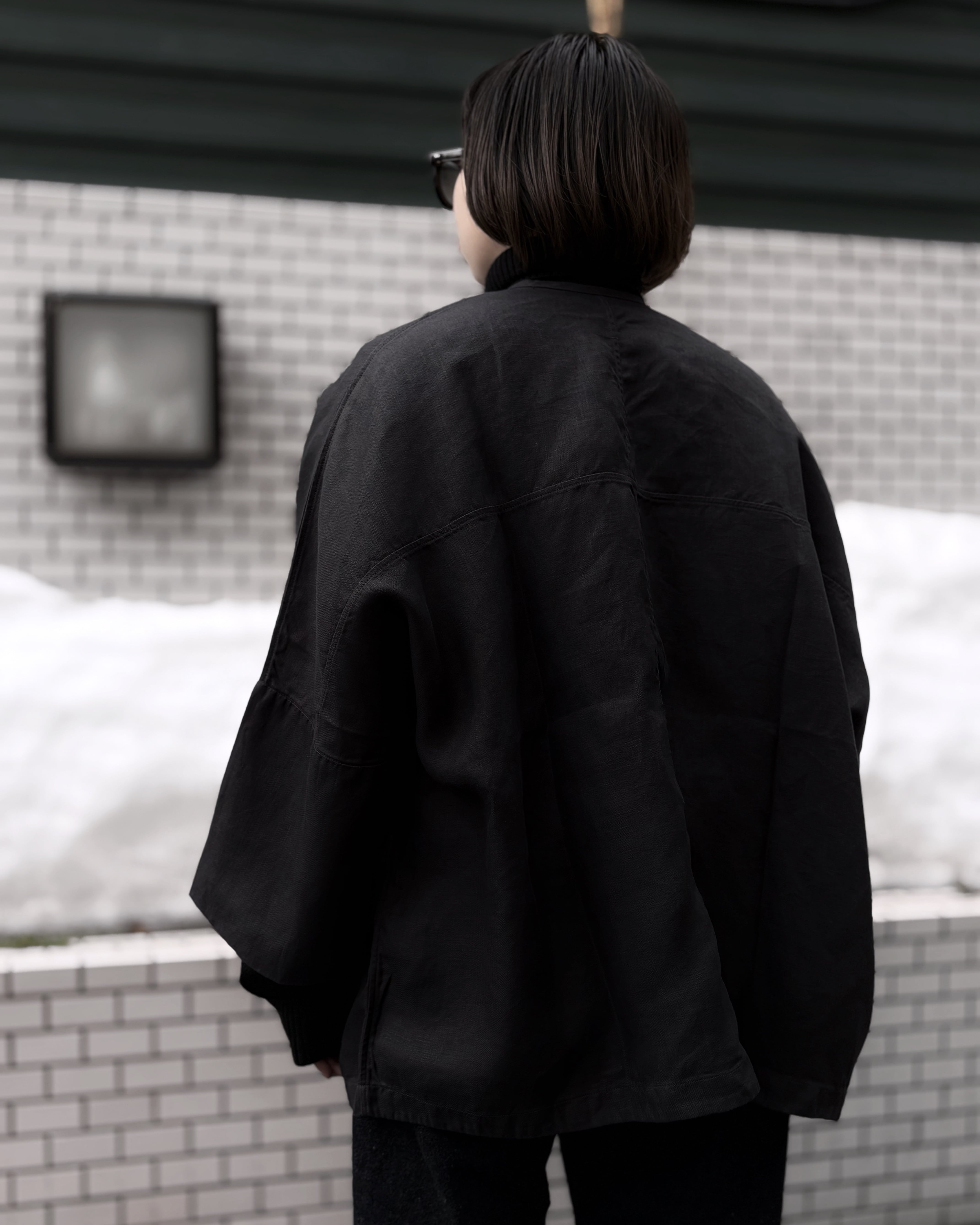 [JK-68] "MITTAN" さざなみ大麻ワイドジャケット (墨黒)