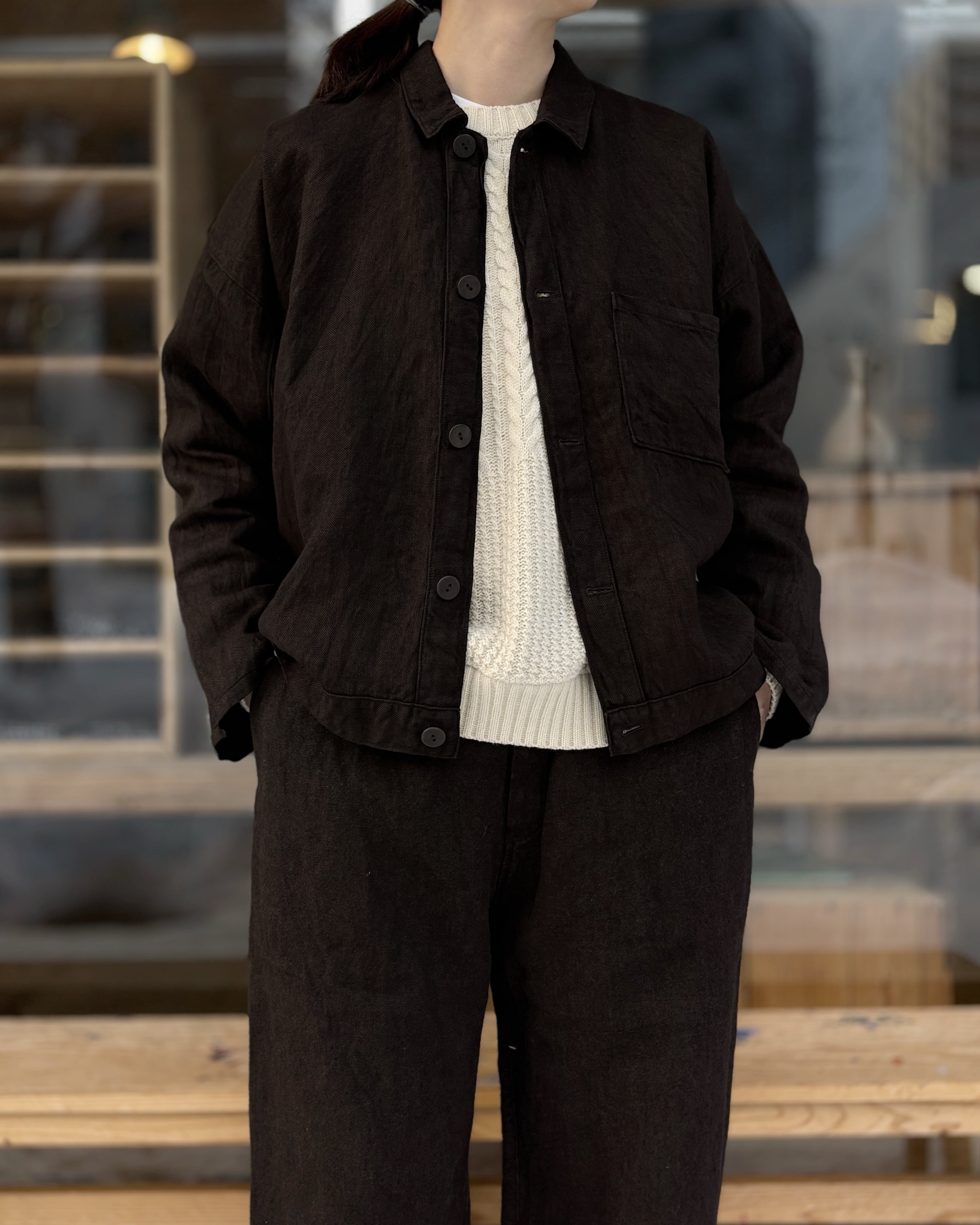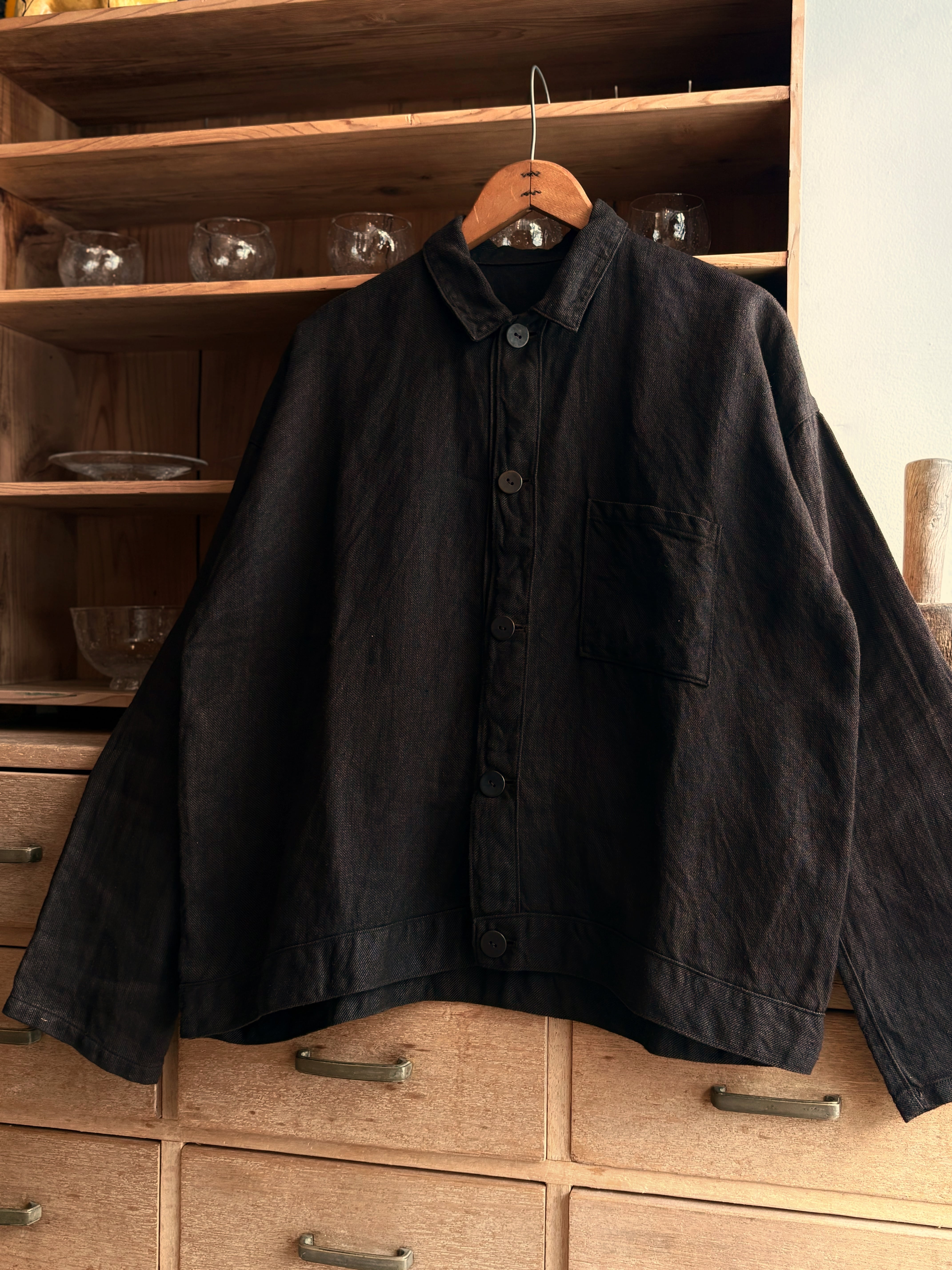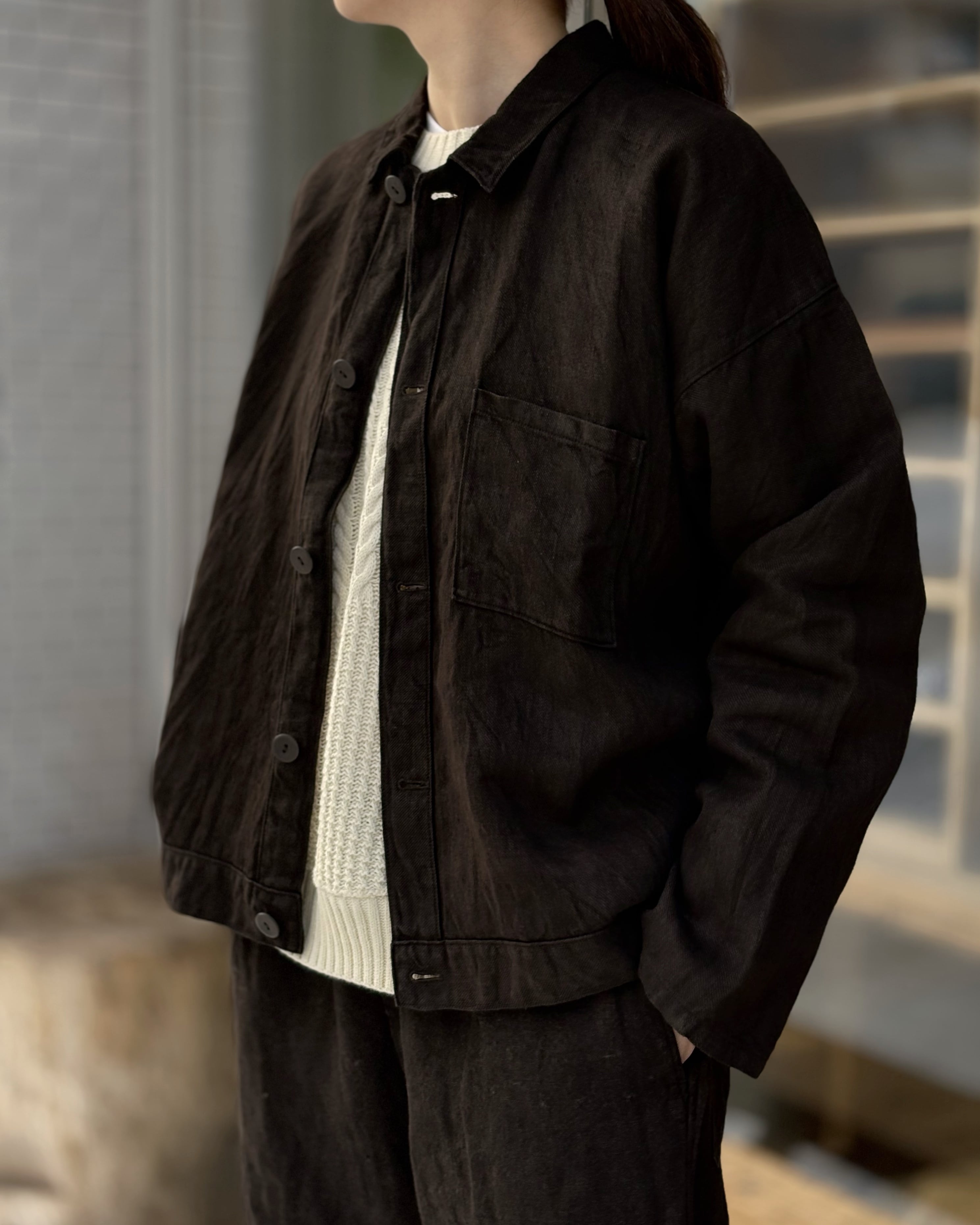 [JK-89M] "MITTAN" 綾織大麻平面ブルゾン (泥染め)