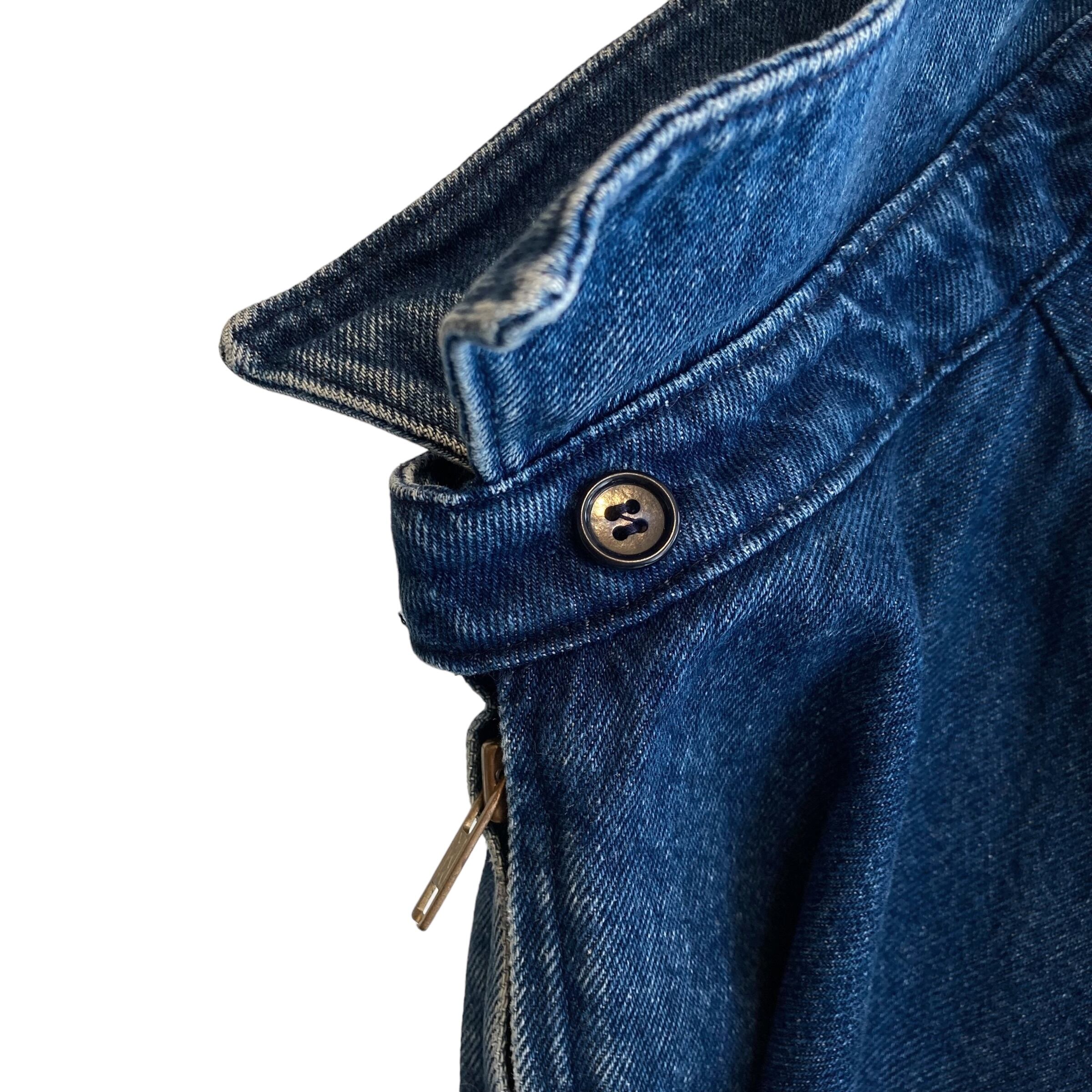 あたりがごりごりと出た雰囲気のあるデニム素材に、クセのないシンプルなシルエット。