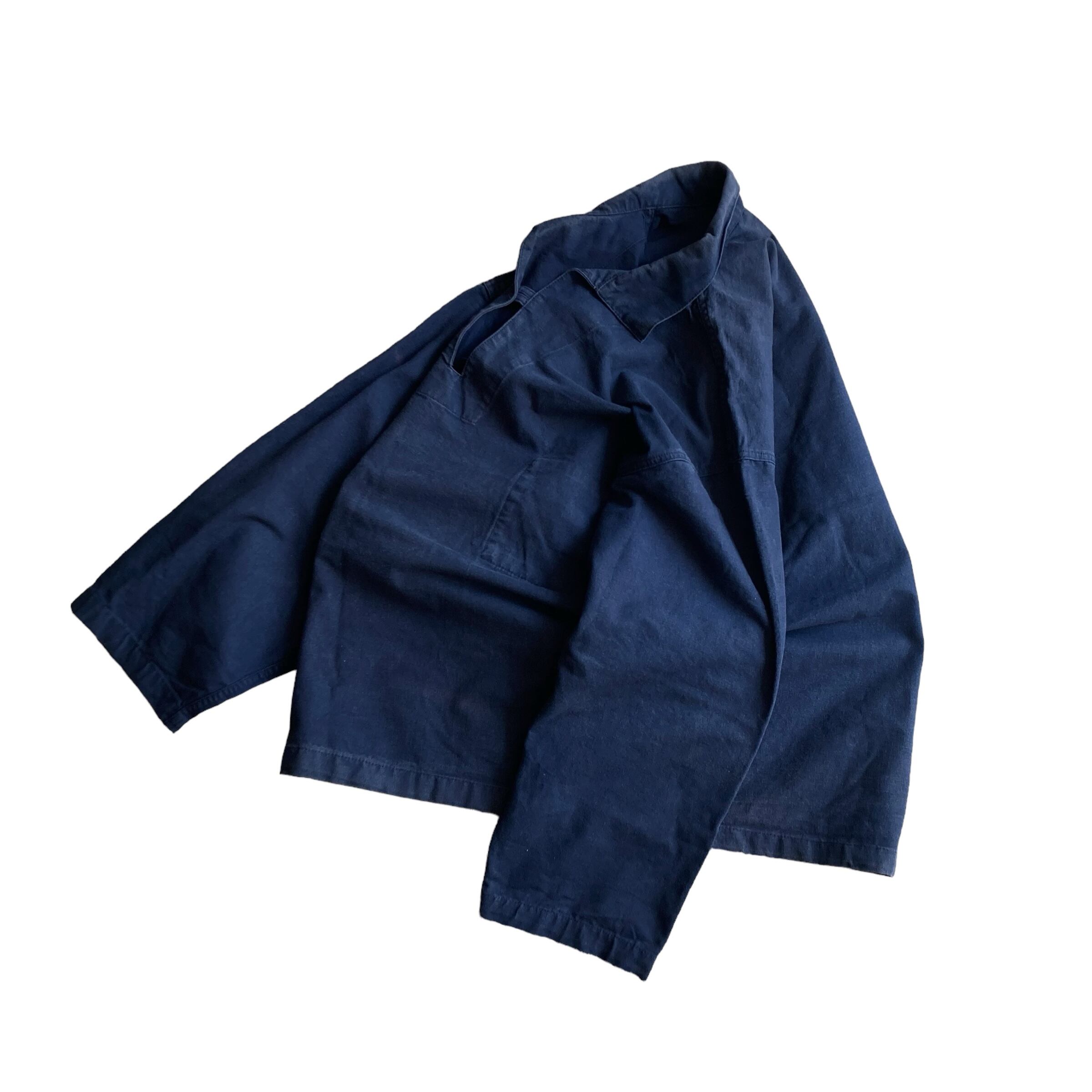 ゆったりとしたボックスシルエットに前開きのプルオーバー + ループ留めのボタン、両胸には内ポケットが付き…流行に流されることの無いオーセンティックなスタイルの1着です。